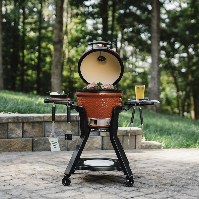 Το καρότσι με ράφια Kamado Joe Jr (κωδικός: KJ15112524) συνδυάζει ανθεκτικότηταλειτουργικότητα και ευκολία στη μετακίνηση ενώ η κατασκευή του από βαρέως τύπου χάλυβα το καθιστά ιδανικό για χρήση σε εξωτερικούς χώρους.