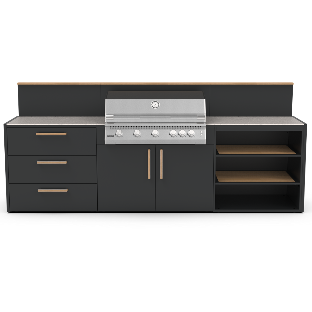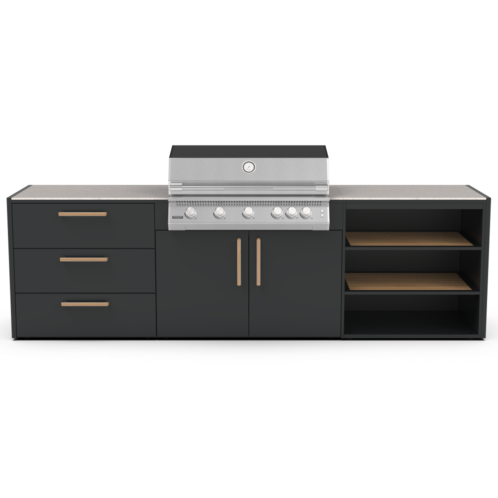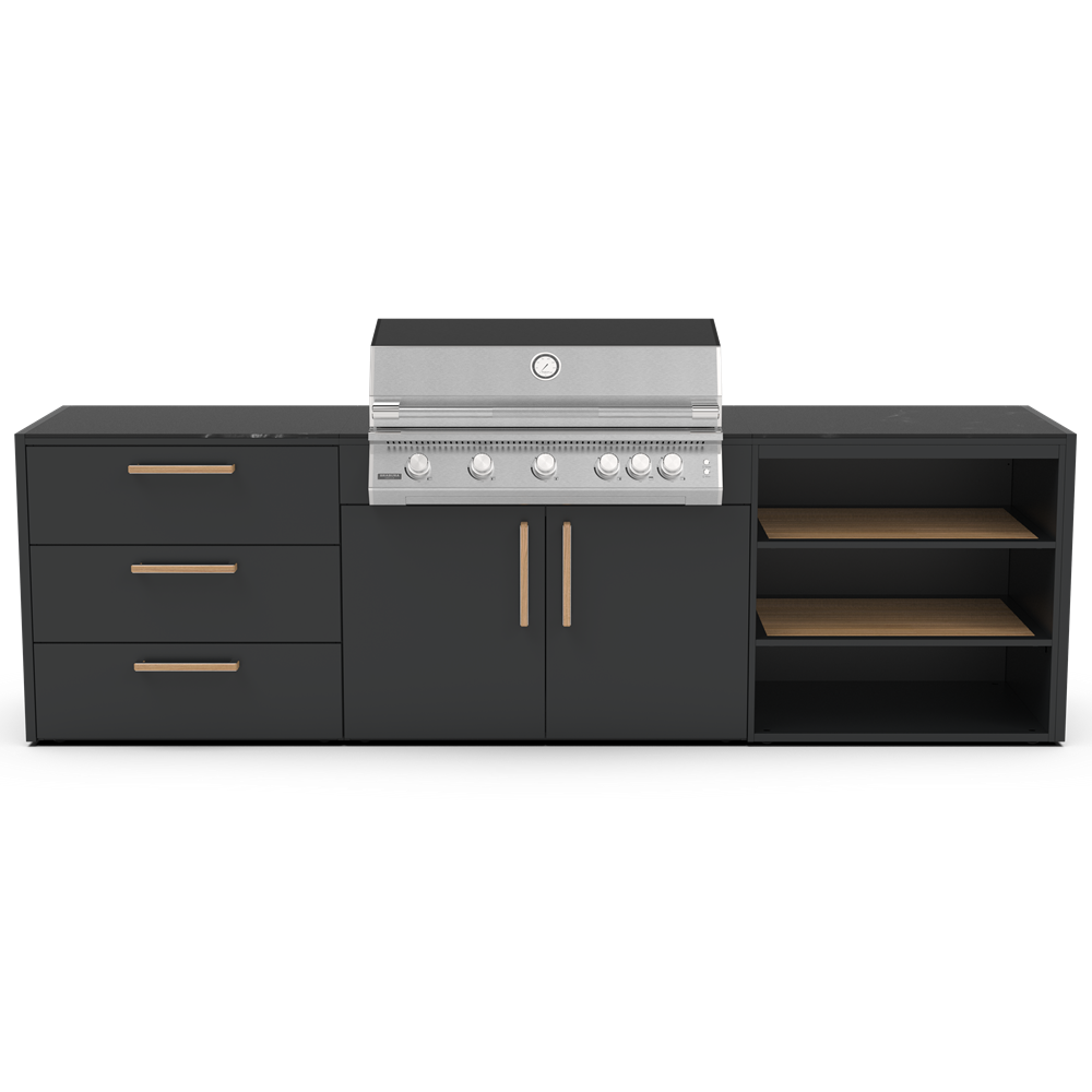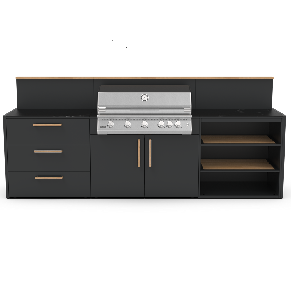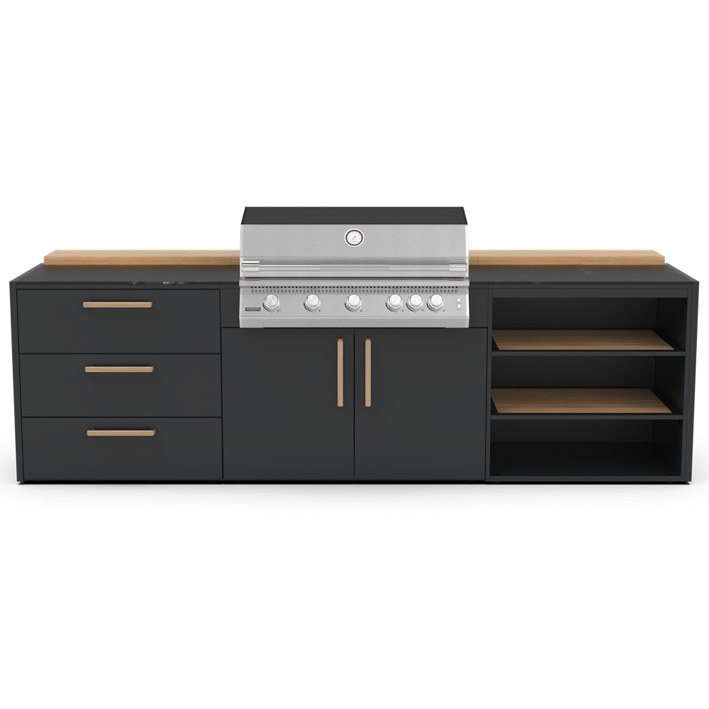 Δώστε στην κουζίνα σας την ποιότητα και την αντοχή που της αξίζει, επιλέγοντας ανάμεσα σε ανοξείδωτο ατσάλι 304 ή 316. Και οι δύο κατηγορίες αποτελούν κορυφαίες λύσεις για οικιακές και επαγγελματικές εφαρμογές, προσφέροντας υψηλή αισθητική και εξαιρετική διάρκεια ζωής. Η κάθε μονάδα κουζίνας έχει σχεδιαστεί ειδικά για να ταιριάζει άψογα με όλη τη γκάμα των μαγειρικών μας συσκευών, όπως Big green Egg, φούρνοι πίτσας, ψησταριές υγραερίου και κάρβουνου. Οι εξωτερικές κουζίνες της Brabura περιλαμβάνουν εύχρηστα χαρακτηριστικά όπως συρτάρι για εισαγωγή και εξαγωγή μπουκάλας αερίου αερίου, ευρύχωρα συρτάρια αποθήκευσης. Αλλά αυτό που πραγματικά κάνει τις κουζίνες μοναδικές είναι ο πρωτοποριακός πάγκος Neolith για αντοχή υπό οποιαδήποτε καιρικές συνθήκες. Διατίθεται σε δύο κομψά φινιρίσματα: Iron Frost και Iron Satin, σε μαύρο χρώμα και λευκό αντίστοιχα. Αυτά τα υλικά από πορσελάνη είναι εξαιρετικά ανθεκτικά στα στοιχεία, χάρη στη μη πορώδη επιφάνειά τους, η οποία αντέχει επίσης γρατσουνιές και υψηλές θερμοκρασίες.