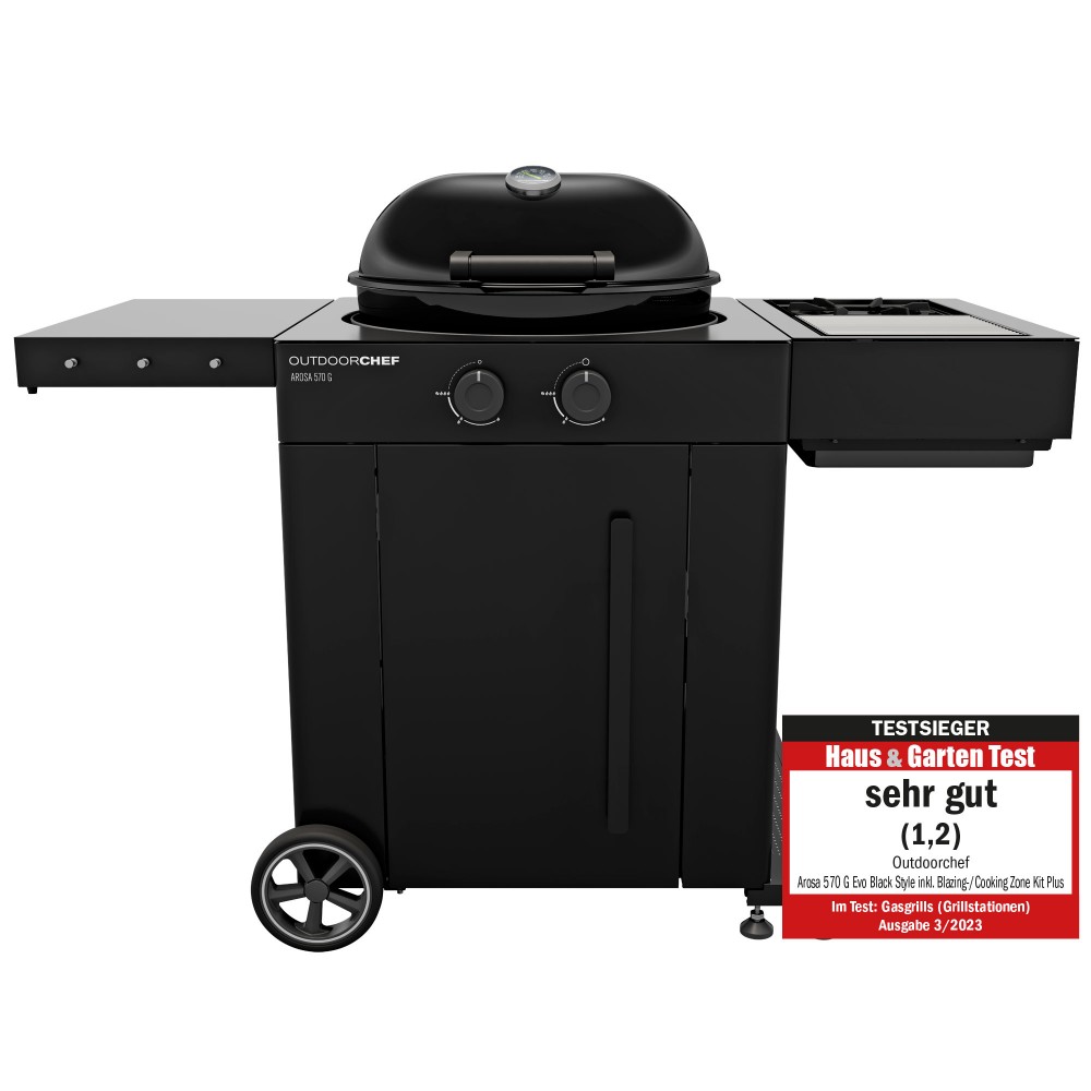 Με την  Arosa 570 G Evo Plus Black, οι λάτρεις του μπάρμπεκιου απολαμβάνουν ένα κομψό πολυλειτουργικό μπάρμπεκιου με τεχνολογία αιχμής που είναι ικανό να καλύψει ακόμα και τις υψηλότερες απαιτήσεις στο μαγείρεμα. Η ψησταριά υγραερίου AROSA EVO Plus Black θέτει νέα πρότυπα στο σχεδιασμό και τη λειτουργικότητα. Διαθέτοντας την τελευταία τεχνολογία καυστήρα της OUTDOORCHEF, αυτό το μοντέλο μπορεί να αναβαθμιστεί με πρόσθετες λειτουργίες ψησίματος και μαγειρέματος.